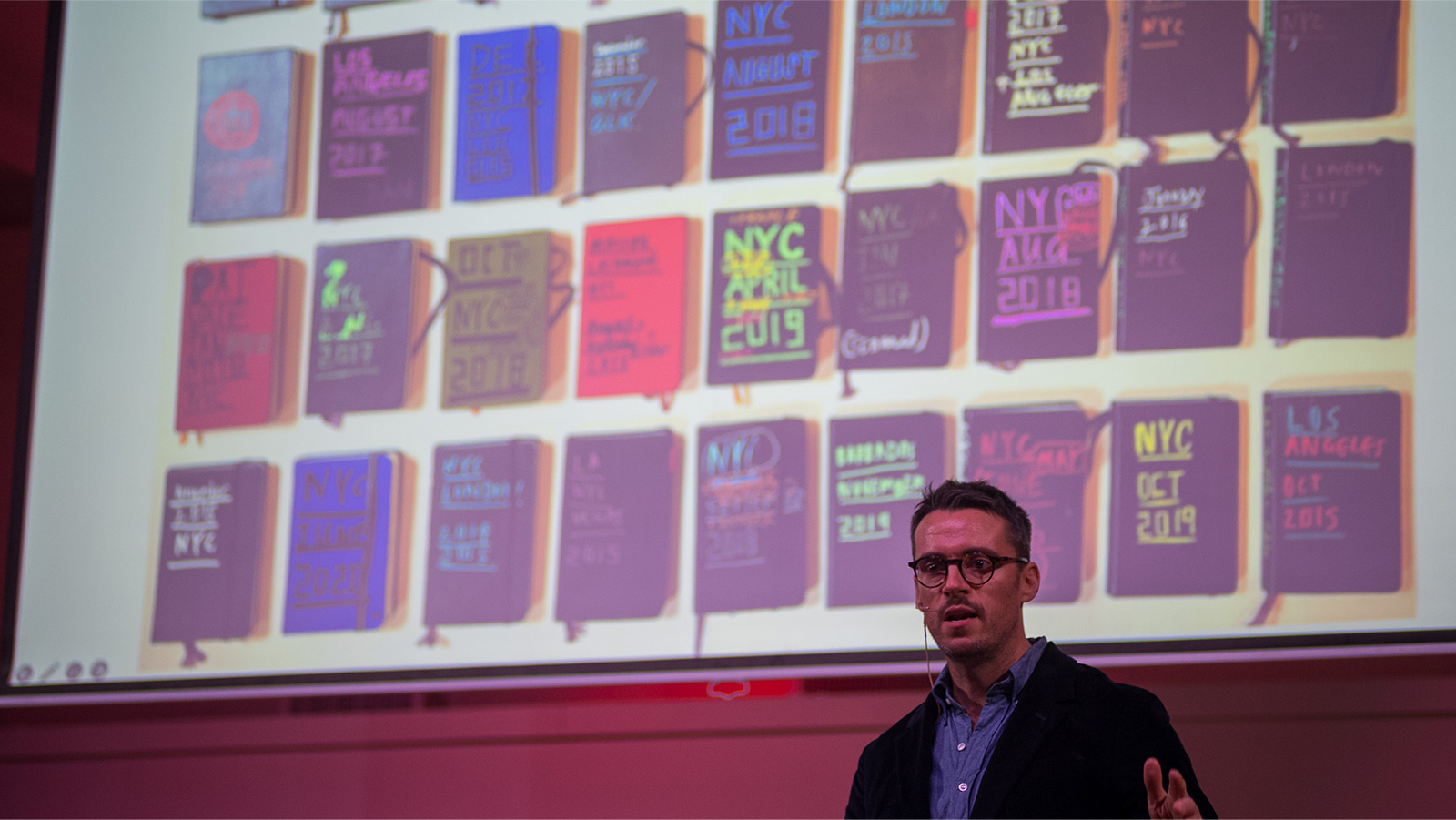 From massive murals to intimate books, he works across all mediums, with drawing at the heart of it all. His intricate cityscapes reflect a belief in creativity’s power to deepen our understanding of the world and engage with it more thoughtfully.