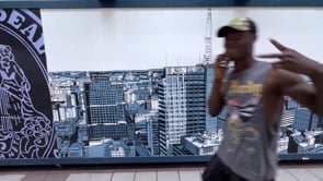 I was commissioned by Mark Merlini, a partner at Brickstone and a lifelong Philadelphian, to create a mural for the historic Lit Brothers building — a full block of Victorian architecture and a cultural icon in Center City. Sitting above a busy SEPTA and PATCO interchange, the site called for a 100-foot mural that could speak to the daily flow of people moving through the concourse.