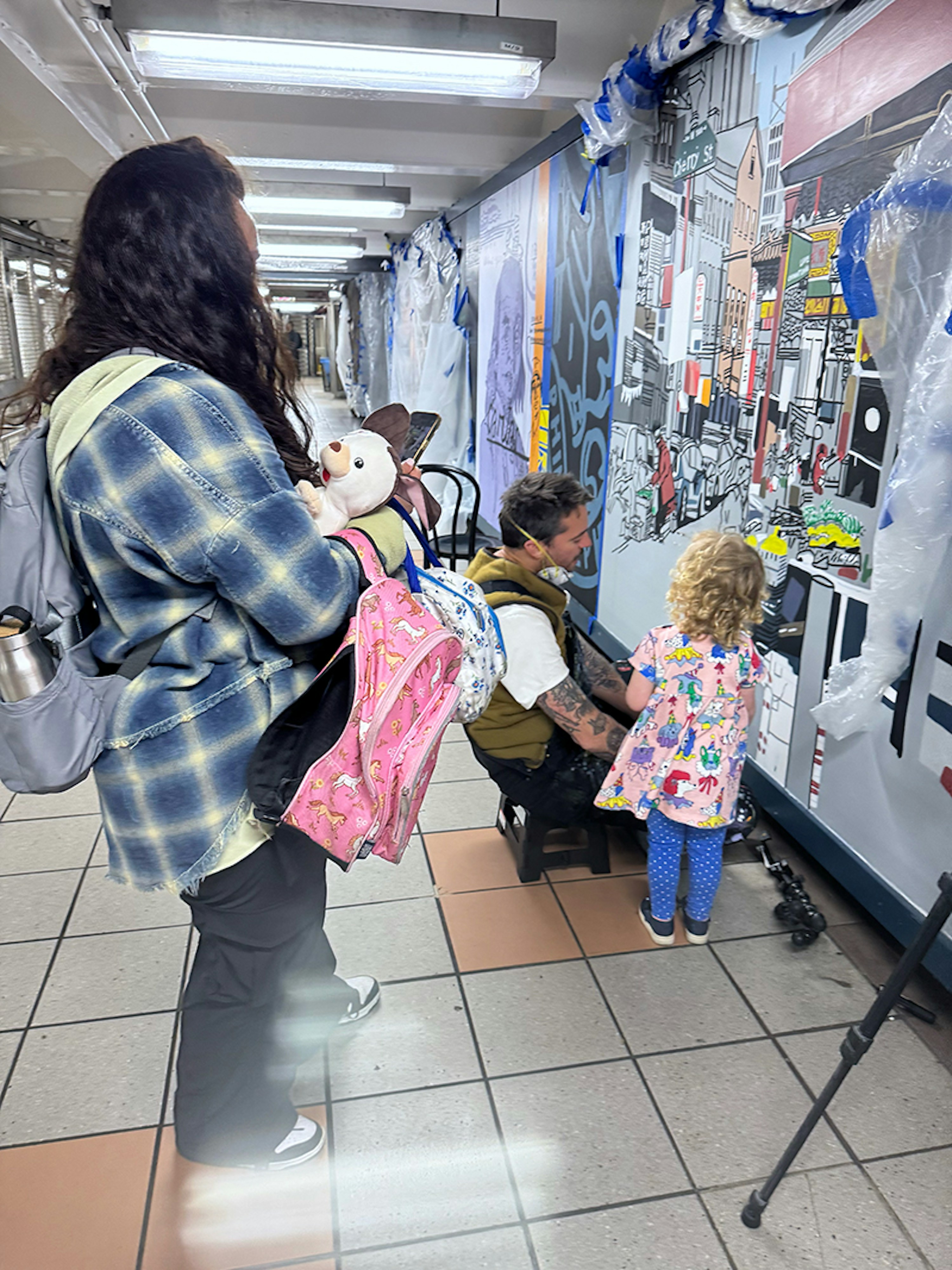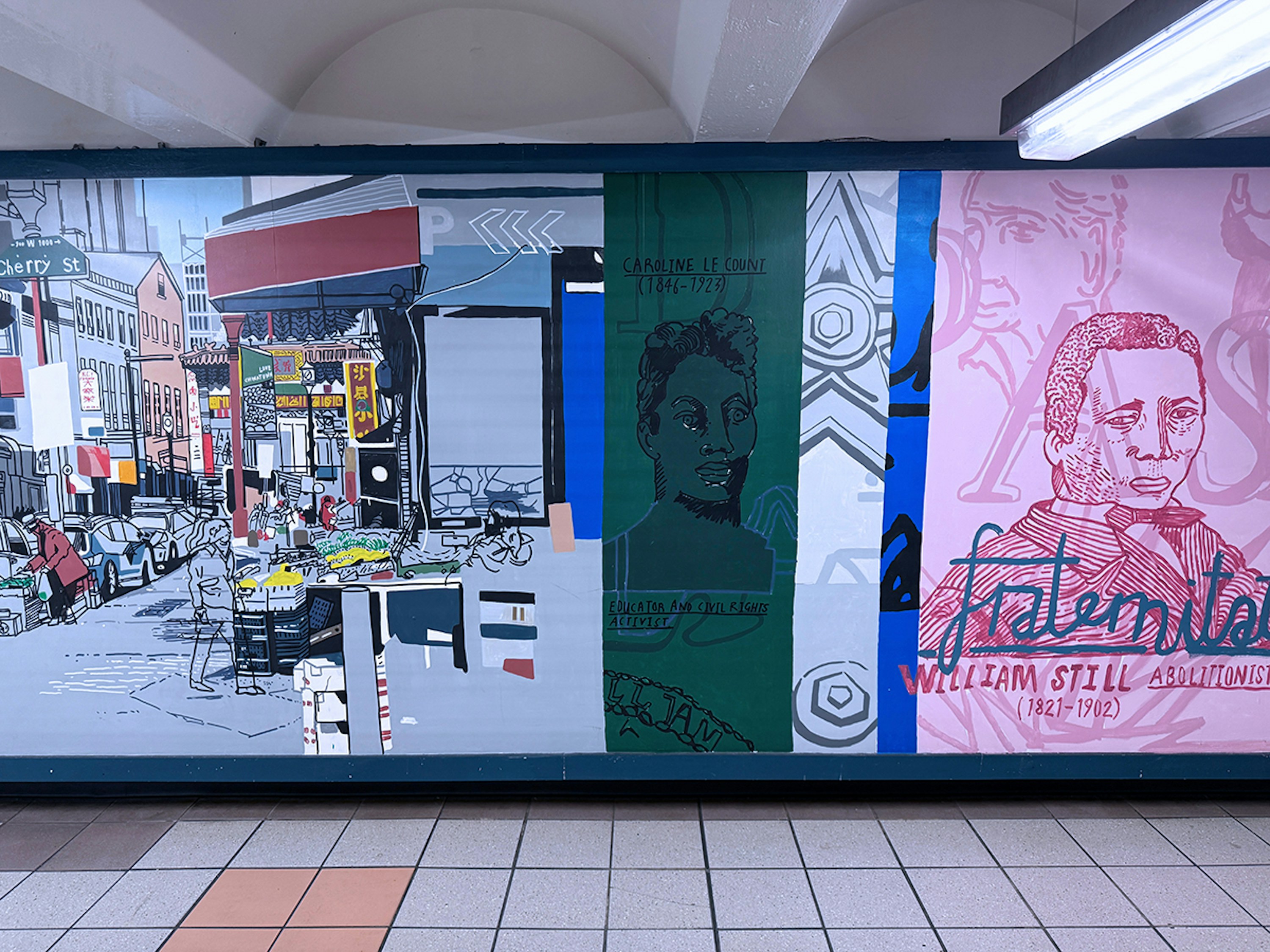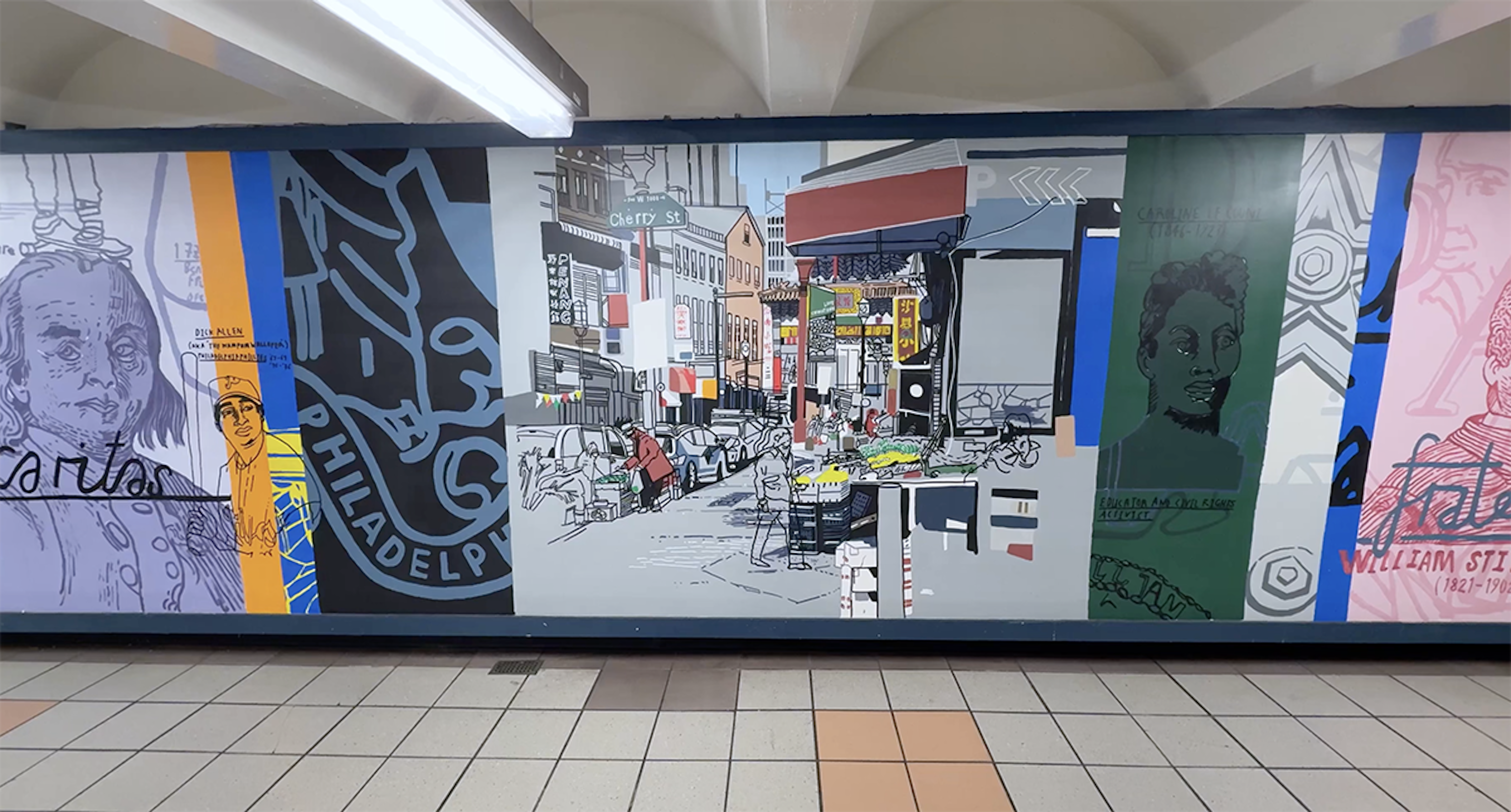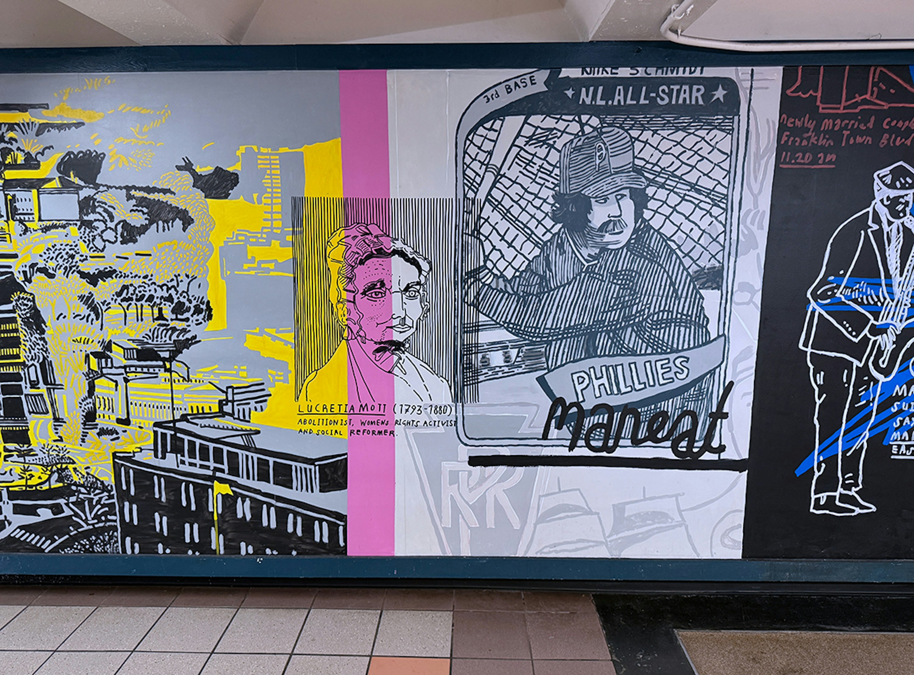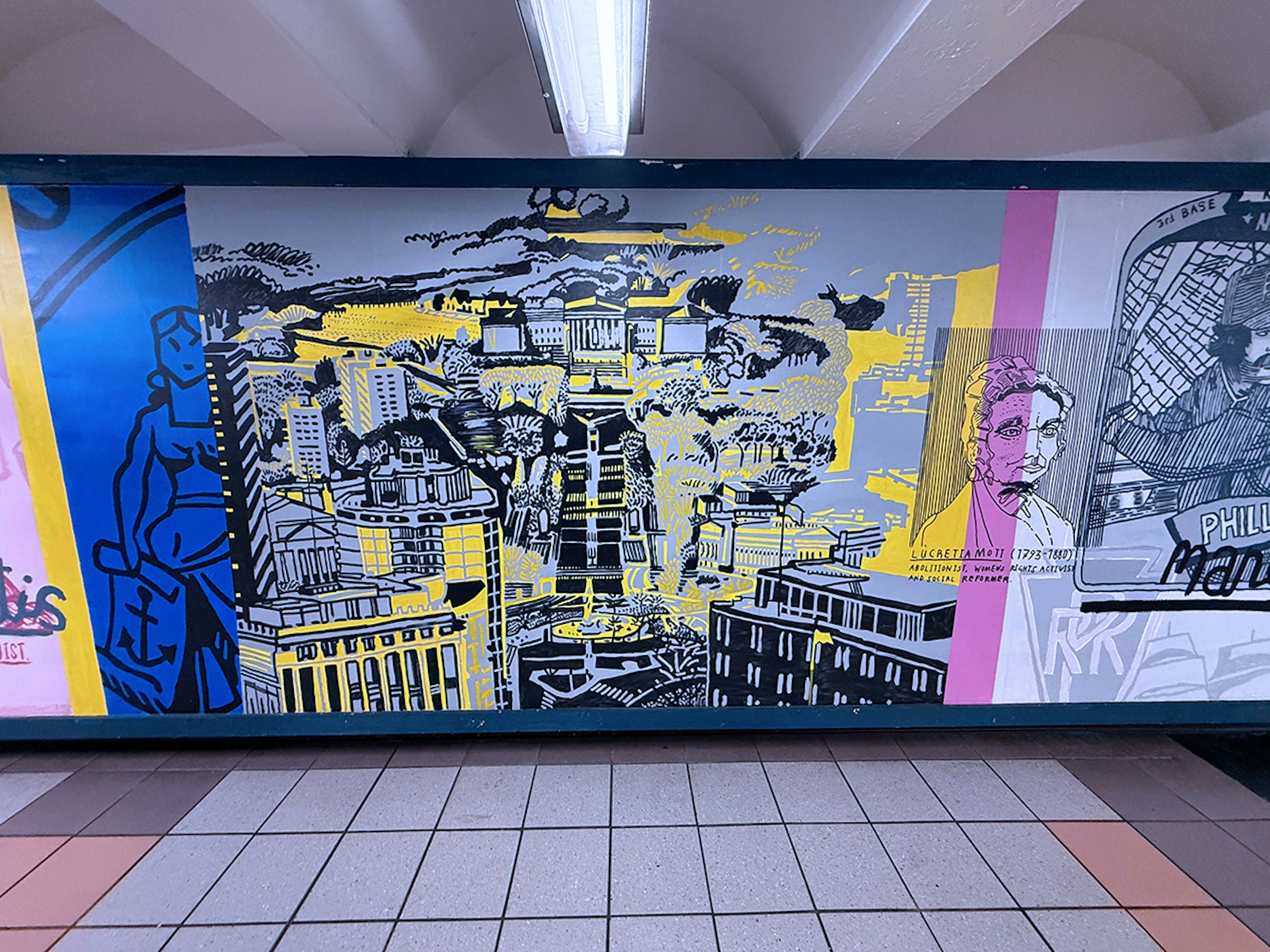 Painting in such a public space was a joy, fueled by conversations and encouragement from passersby, with invaluable support from the teams at SEPTA and PATCO. I hope the finished work reflects Mark’s vision and love for the city — its grit, humor, and heart — and the generosity with which it welcomed me.