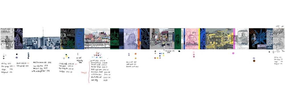 Though I knew Philadelphia’s importance in American history, I hadn’t really explored it on foot. So I did — walking over 25 miles with a sketchbook, wandering without a plan, and gathering stories and memories from locals along the way. The mural is designed to unfold in layers, revealing historical figures, everyday scenes, and shared moments over time.