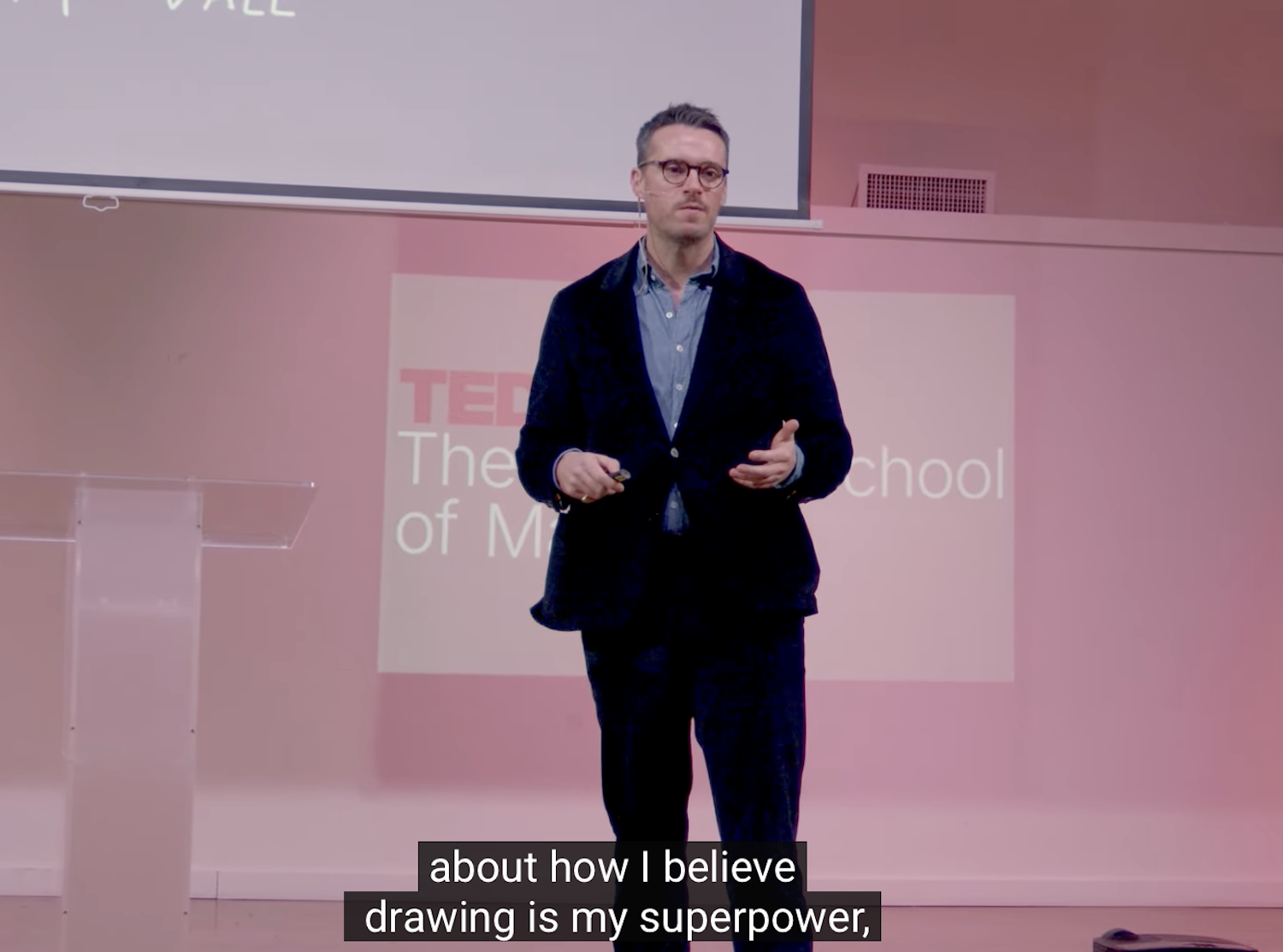 in December 2024 i was invited to do a TED X talk at the Geneva School of Manhattan. in "DRAWING IS MY SUPERPOWER" i talk about how drawing has always been a friend to me all my life and how i use it to navigate tricky moments and connect with people.