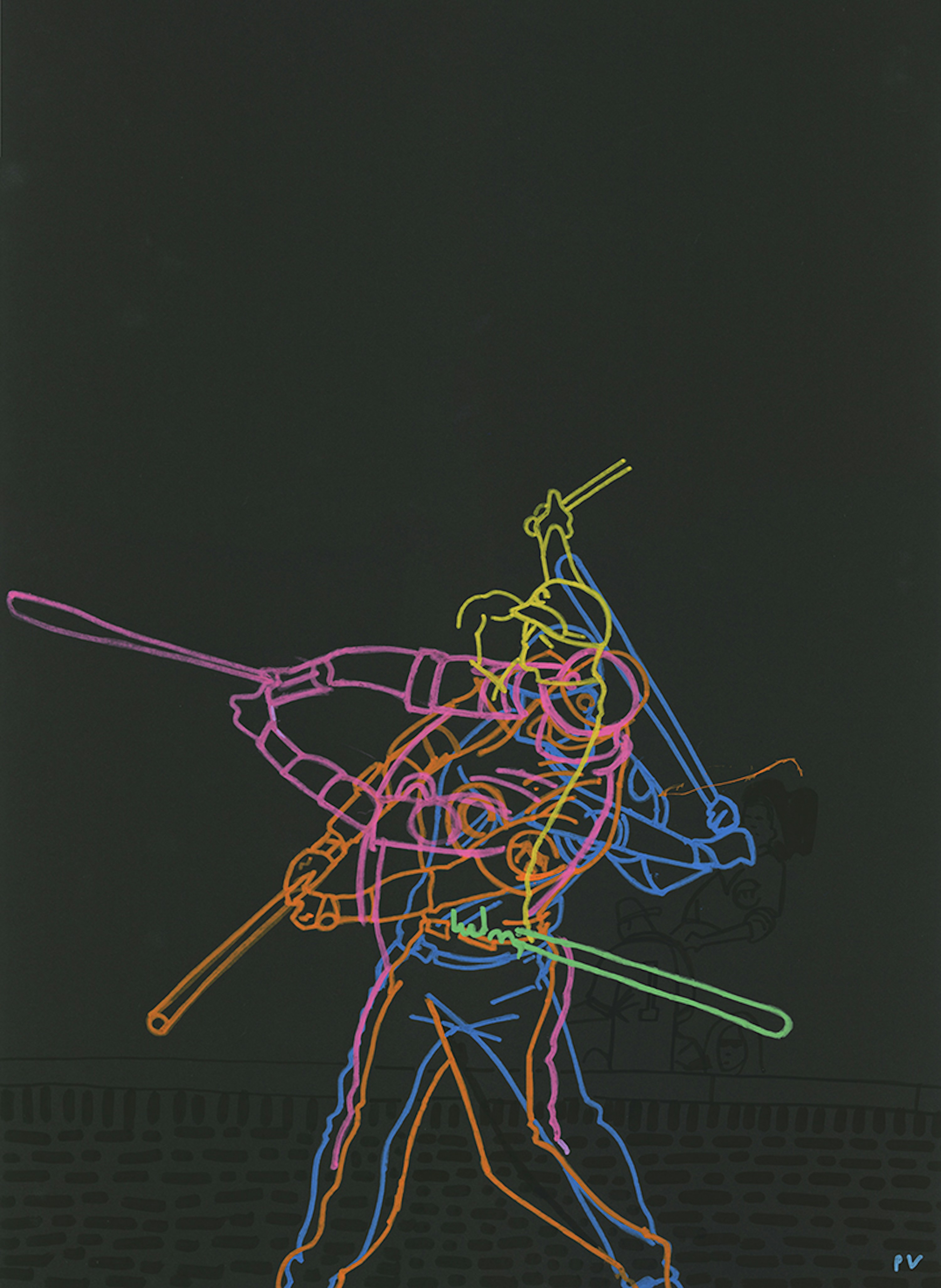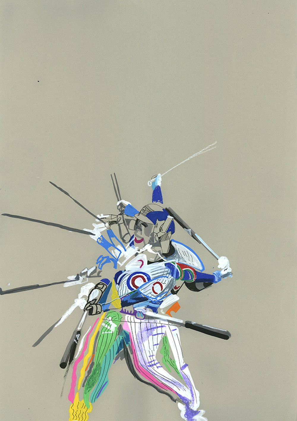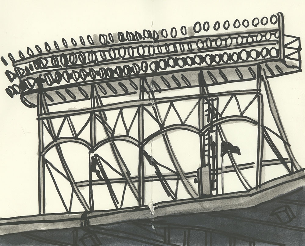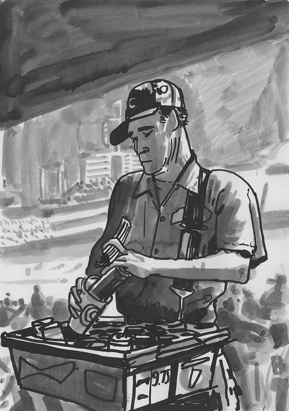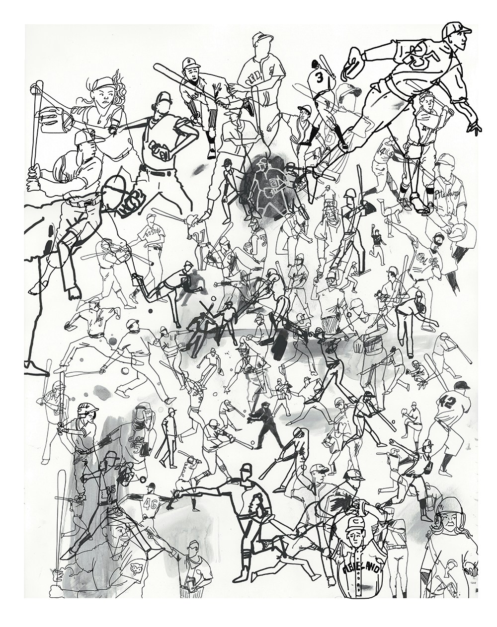 I initially collaborated with Chicago Cubs outfielder and Gold Glove winner Ian Happ on a series of three drawings created from his point of view during games, translating fleeting moments on the field into intricate, hand-drawn observations. Shaped by Ian’s deep passion for the club and the living history of the iconic Wrigley Field, the project explored the shifting perspectives, quiet pauses, and charged energy that define the experience of baseball from within. What began as a focused commission gradually expanded into a wider body of work and exhibition, as my research into the Cubs’ enduring relationship with the city of Chicago revealed a deeper story — one where architecture, memory, and civic identity intertwine, and where the ballpark becomes both stage and symbol within the urban landscape.